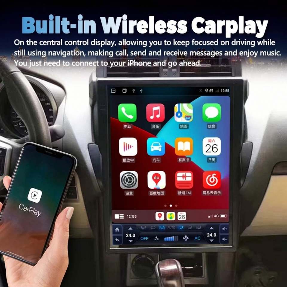 หน้าจอ OLED DSP Tesla ขนาด 15 นิ้ว สำหรับรถยนต์ Land Cruiser Prado 150 ปี 2014 2017 LC150 วิทยุติดรถยนต์ระบบ Android 13 เครื่องเล่นวิดีโอ GPS 2 Din
