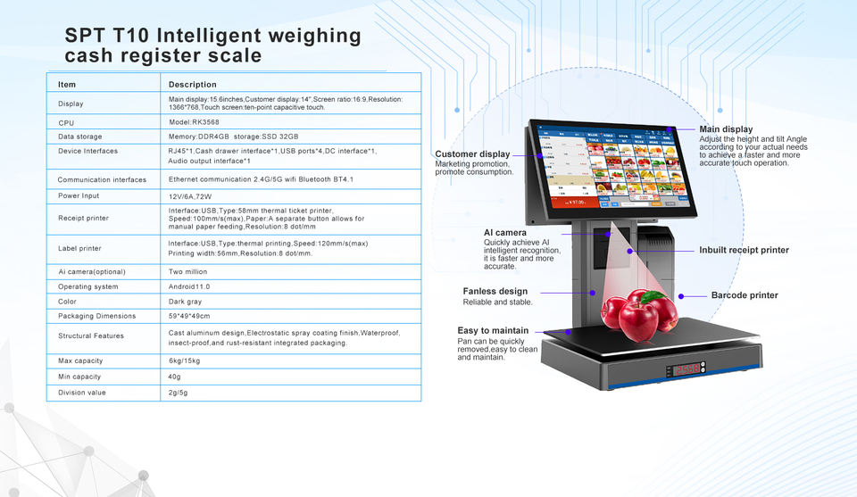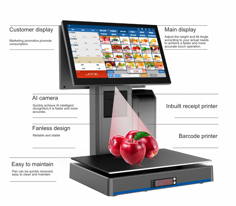 ระบบ POS สำหรับผักผลไม้พิมพ์ฉลากหน้าจอสัมผัสขนาด15กก.