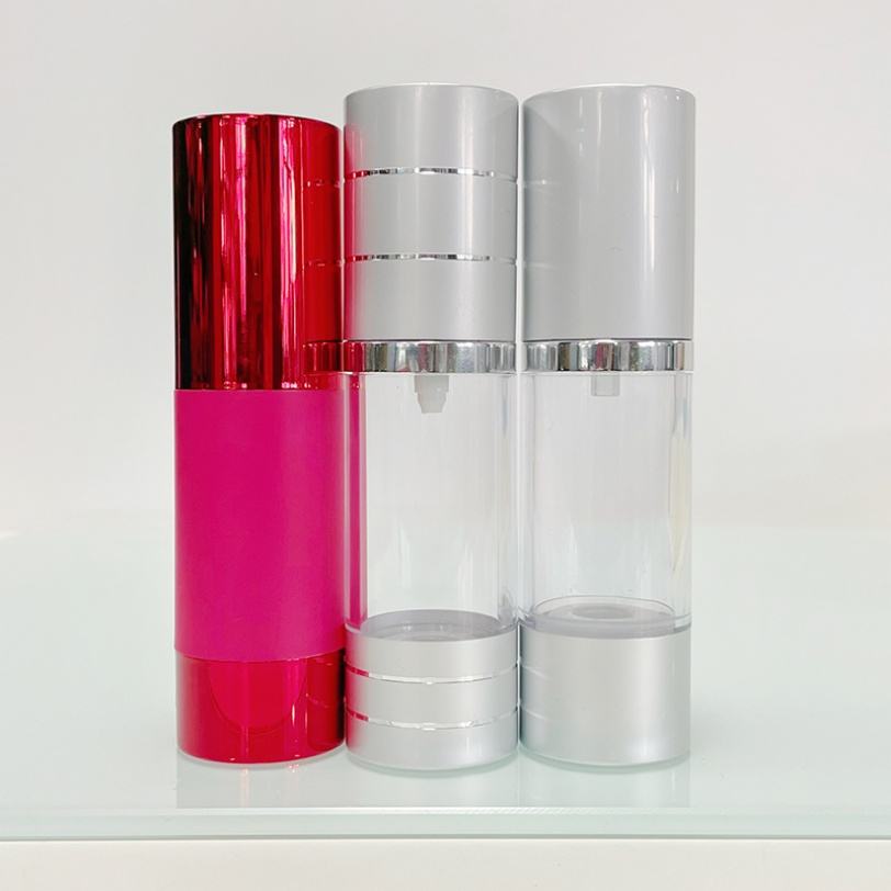 ขวดพลาสติกสีเงินขนาด 15 มล. 20 มล. 30 มล. พร้อมหัวปั๊มสุญญากาศสำหรับโลชั่นและรองพื้น