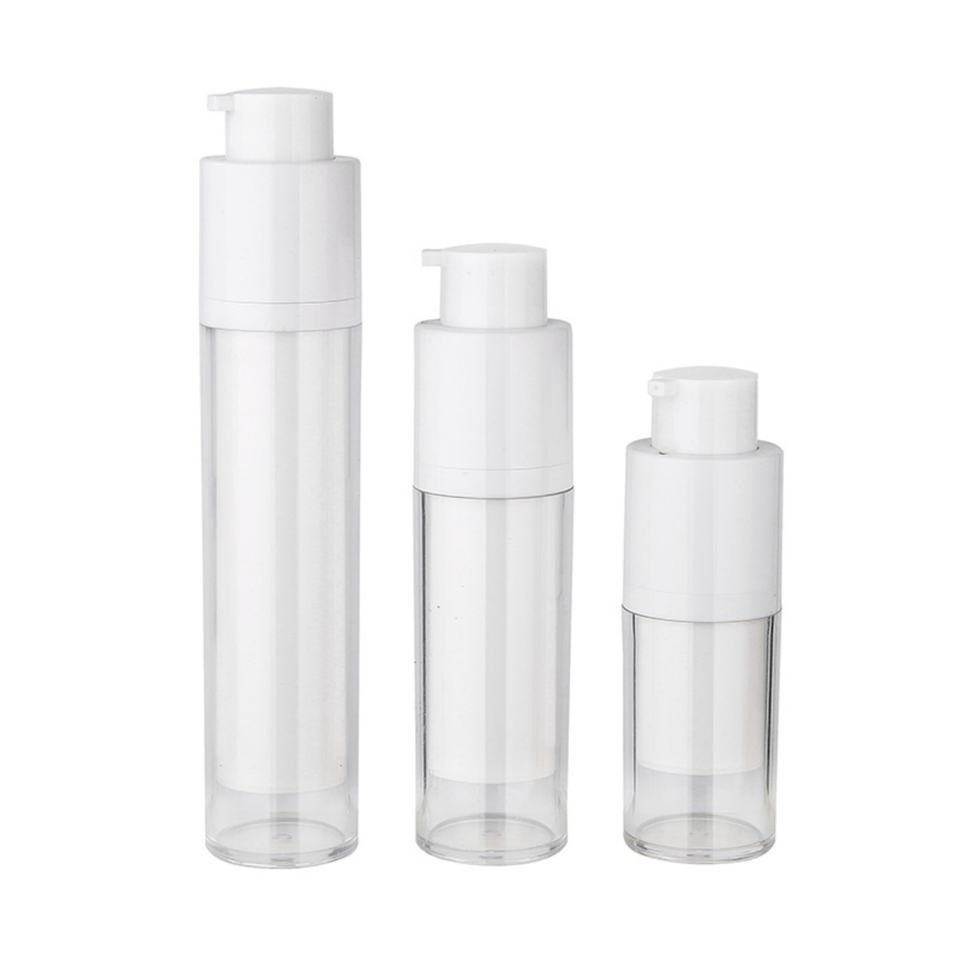 ขวดบรรจุภัณฑ์รองพื้นแบบสุญญากาศขนาด 15 มล. 30 มล. 50 มล. แบบเติมได้ กระปุกครีมบำรุงผิวหน้าอะคริลิค ภาชนะบรรจุเซรั่มแบบปั๊ม