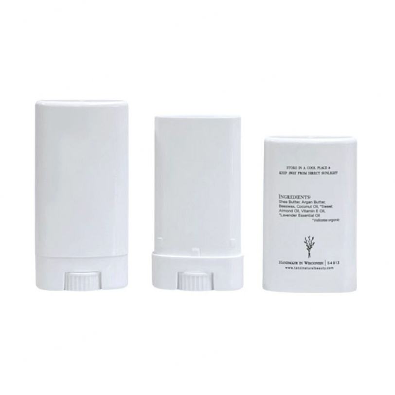 หลอดลิปบาล์มพลาสติกทรงรีขนาด 15 มล. บรรจุภัณฑ์ลิปสติกแบบแท่งขนาดเล็ก หลอดใส่ผลิตภัณฑ์ระงับกลิ่นกายแบบแท่งสีขาวขนาดเล็ก บรรจุภัณฑ์แท่งกันแดดขนาด 15 กรัม