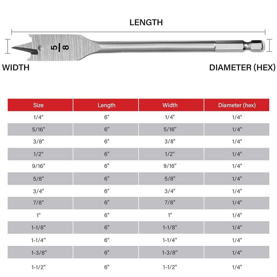 15pcs Carbon Steel Spade Drill Bit Set with Connection Rod Wrench 6mm-25mm High Hardness Paddle Flat Bit for Wood Hole