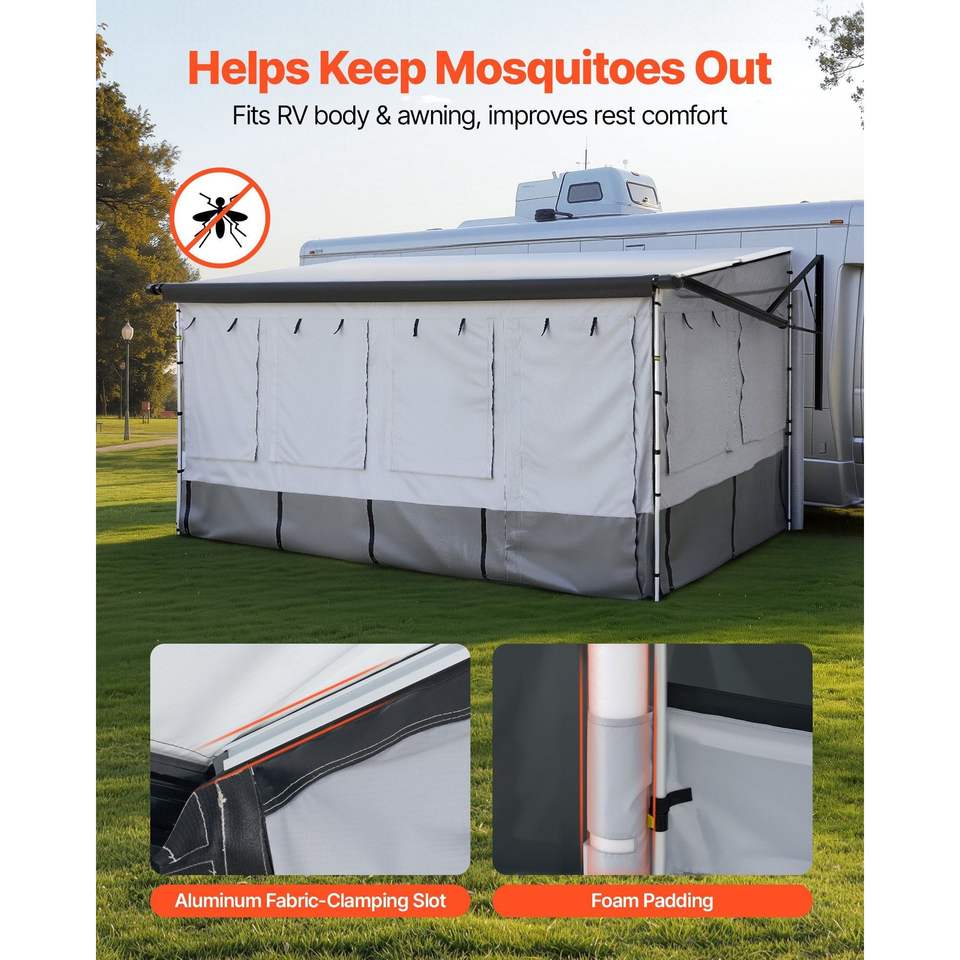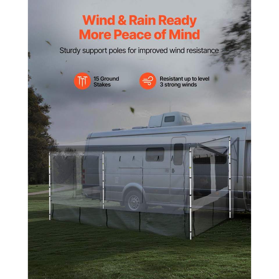 ห้องบังแดดสำหรับรถบ้านขนาด 16-17 ฟุต ใช้ได้กับกันสาด มีหน้าต่างและประตูแบบตาข่ายระบายอากาศ