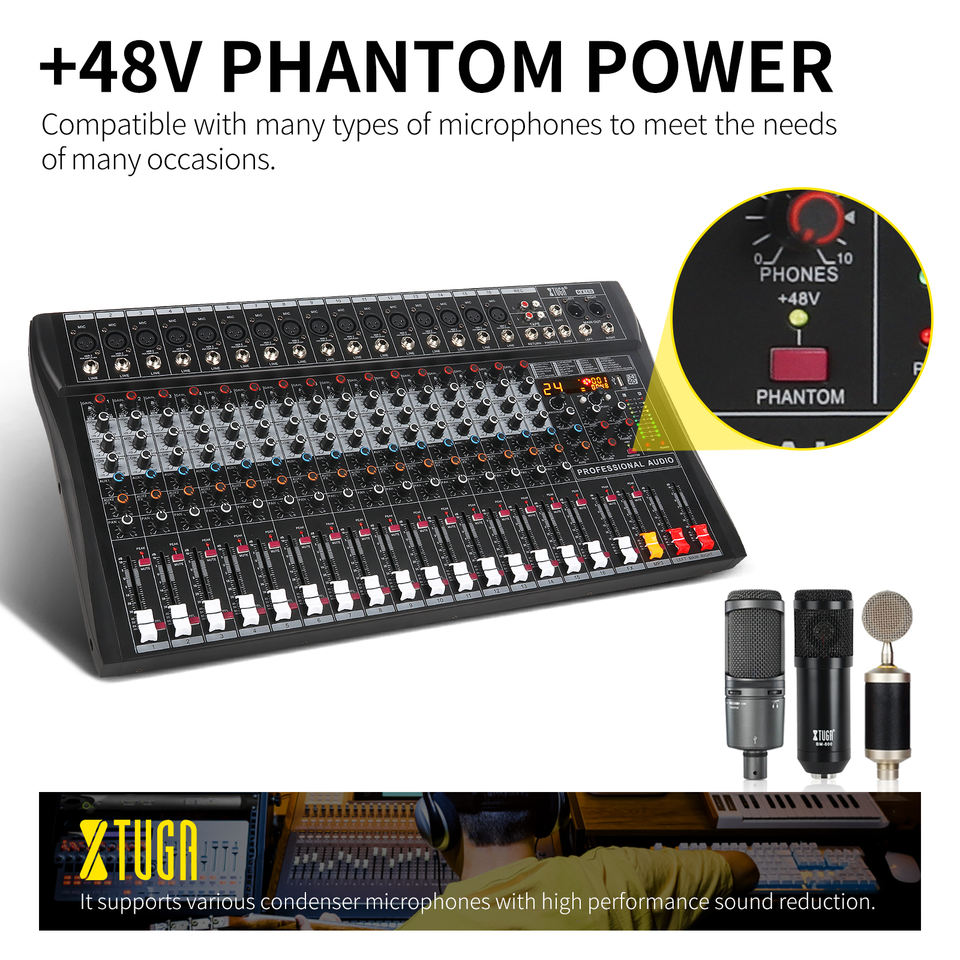 มิกเซอร์เสียงระดับมืออาชีพ 16 ช่องสัญญาณ ดีไซน์ใหม่ อุปกรณ์สตูดิโอ ดีเจ ไมโครโฟน ขยายเสียง เอฟเฟคเสียงสะท้อน ไฟวิดีโอ