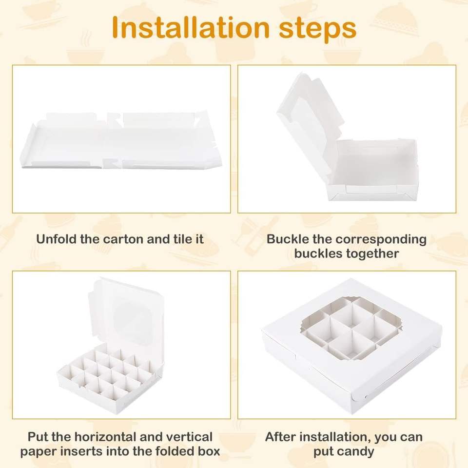 กล่องกระดาษสีขาวเปล่า 16 ช่อง พร้อมแผ่นรองและหน้าต่างใสสำหรับใส่ช็อกโกแลตและขนมหวานแบบคละชนิด
