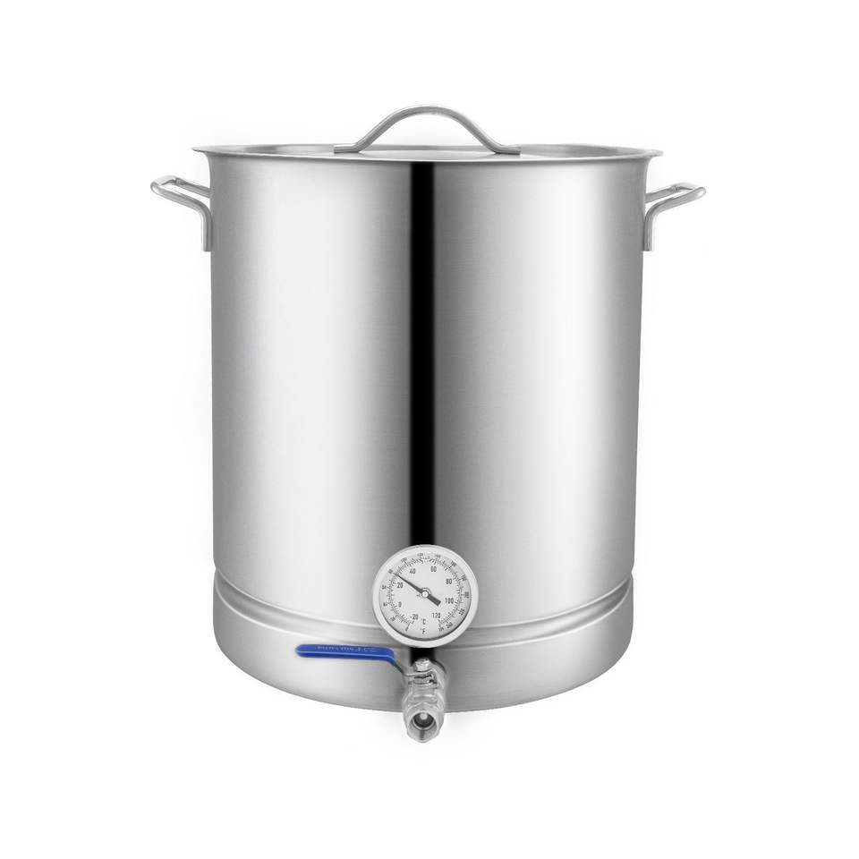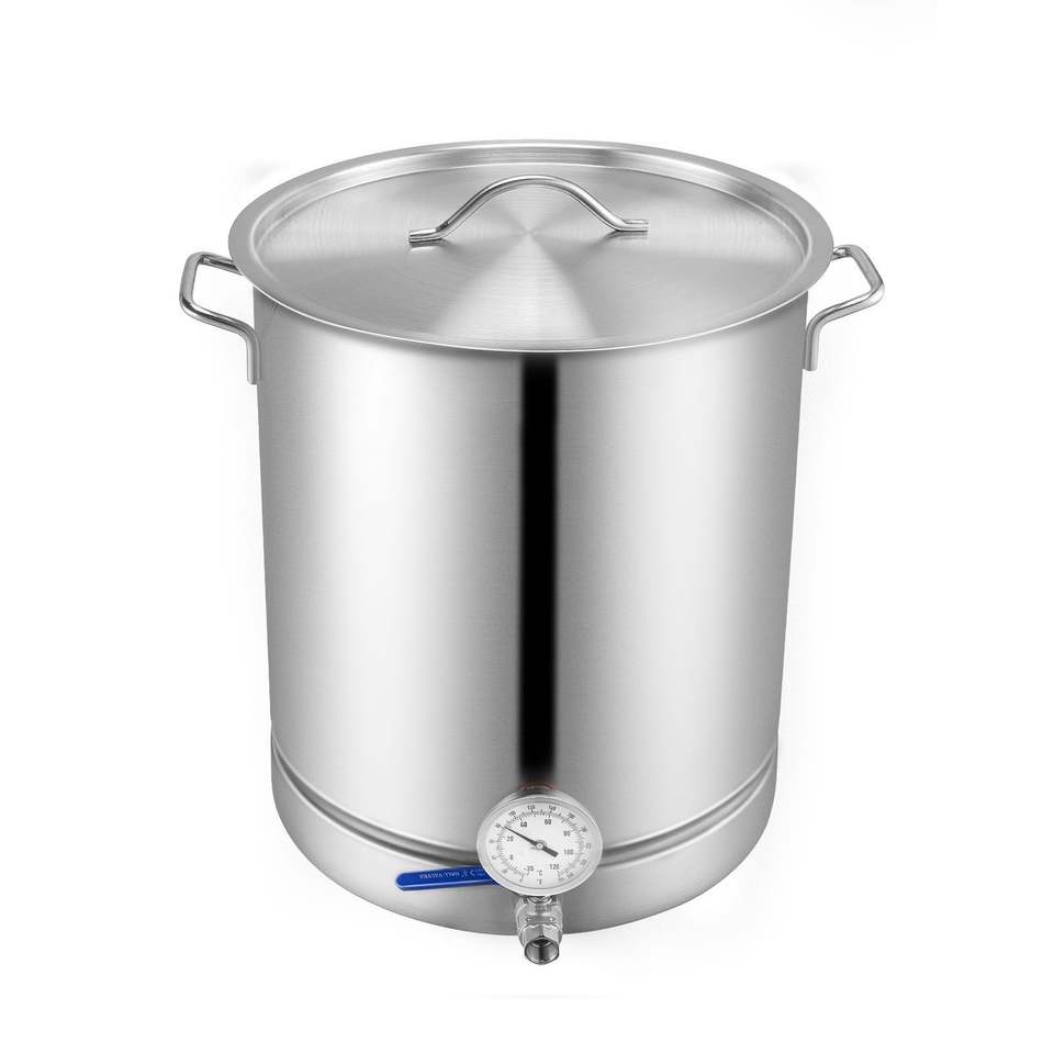 หม้อสแตนเลสแบบสามชั้น ขนาด 16 แกลลอน พร้อมฝาปิด สำหรับต้มเบียร์และไวน์ รวมอุปกรณ์ครบชุด