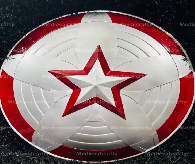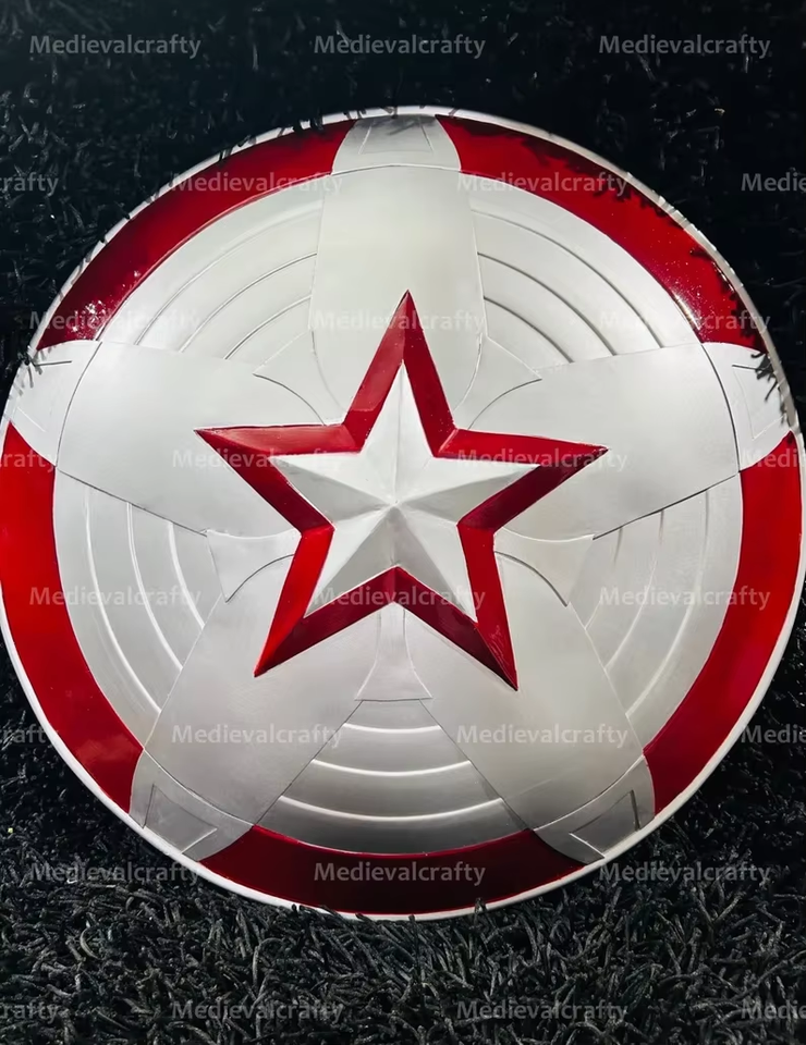 โล่ป้องกันสีแดงยุคกลาง CH 16 เกจ โล่โลหะหรูหรา สำหรับคอสเพลย์ ของขวัญคริสต์มาส โดย calvin handicraft