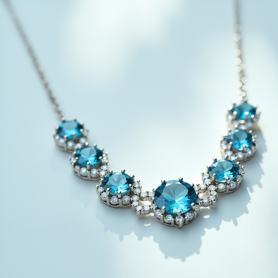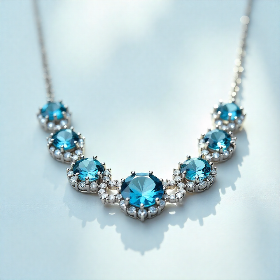 สร้อยคอไฮโดรโทแพซสีน้ำเงิน 16 นิ้ว