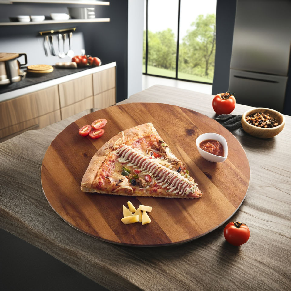 ถาดหมุนอเนกประสงค์ขนาด 16 นิ้ว ทำจากไม้กระถินณรงค์สีน้ำตาล ดีไซน์แบบไม้ไผ่ สไตล์เวียดนาม สำหรับเสิร์ฟชีสและอาหารว่าง