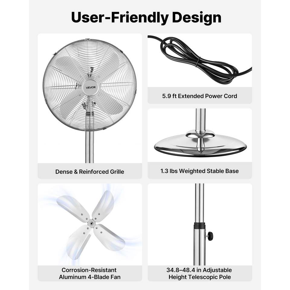 พัดลมตั้งพื้นอุตสาหกรรมขนาด 16 นิ้ว ความเร็วสูง 1450 CFM พร้อมด้ามจับ ปรับส่ายได้ 75 องศา ปรับความเร็วได้ 3 ระดับ
