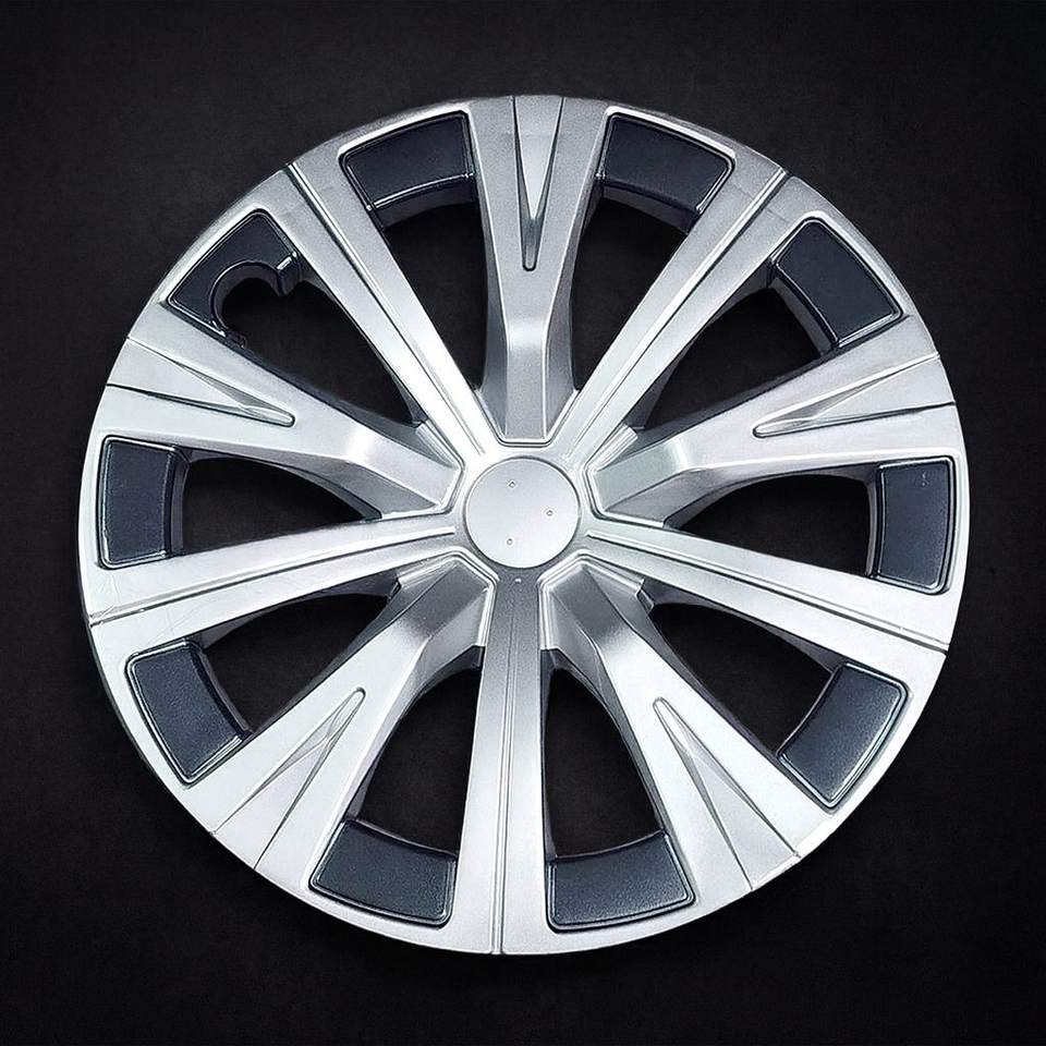 ฝาครอบล้ออเนกประสงค์สีเงินและสีดำขนาด 16 นิ้ว ทำจากพลาสติก ABS