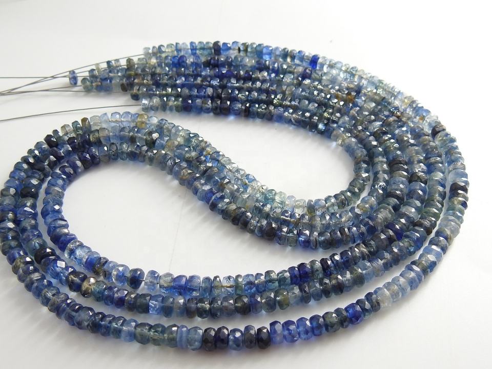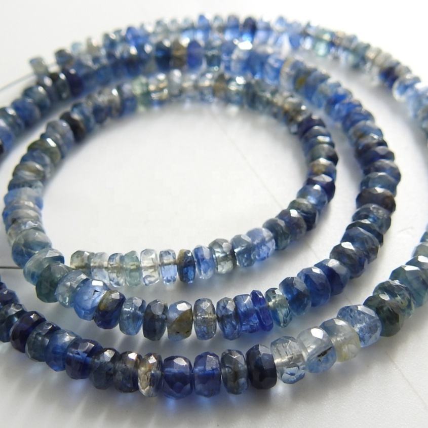 ลูกปัดกลมไคยาไนต์ขนาด16นิ้ว, ลูกปัด100% กลมเหลี่ยมเพชรพลอยธรรมชาติขนาด4มม. รู0.50มม. มีหลายเงาสำหรับทำเครื่องประดับ