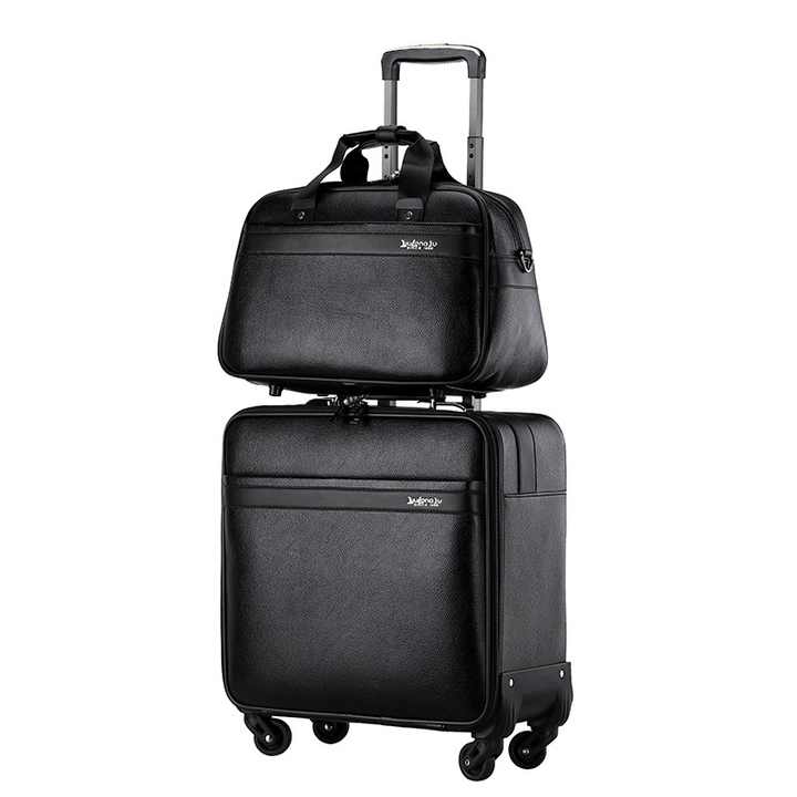 กระเป๋าเดินทางแบบมีล้อลาก ขนาด 16 นิ้ว สำหรับเดินทางธุรกิจ ล้อหมุนได้รอบทิศทาง ทำจากหนัง PU แบบ 2in1 กระเป๋าเดินทางแบบมีล้อลากและแบบมีล้อหมุน