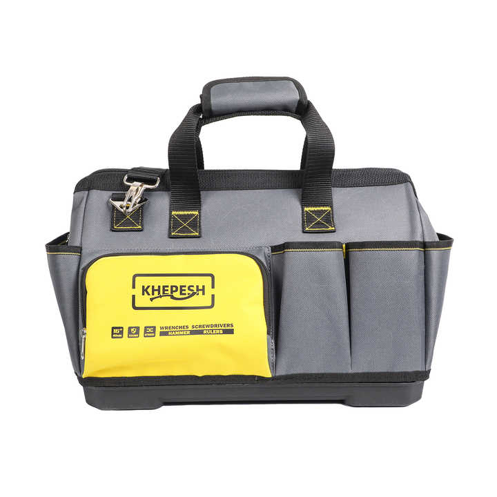 16นิ้วกระเป๋าเครื่องมือทนทานกันน้ำสำหรับงานหนัก14กระเป๋า600D โพลีเอสเตอร์ฐานแข็งด้านล่างสำหรับผู้รับเหมาไฟฟ้า