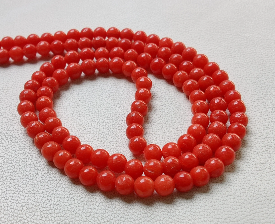 ลูกปัดปะการังสีแดงเมดิเตอเรเนียนเส้นยาว16 "นิ้วลูกปัดปะการังแดงธรรมชาติสี100% ปะการังทรงกลมขัดเงาเรียบ