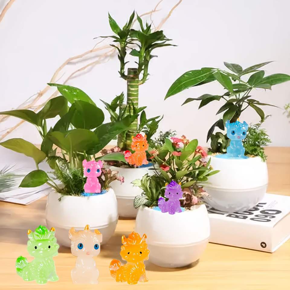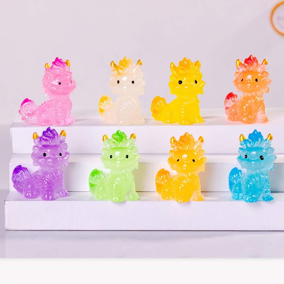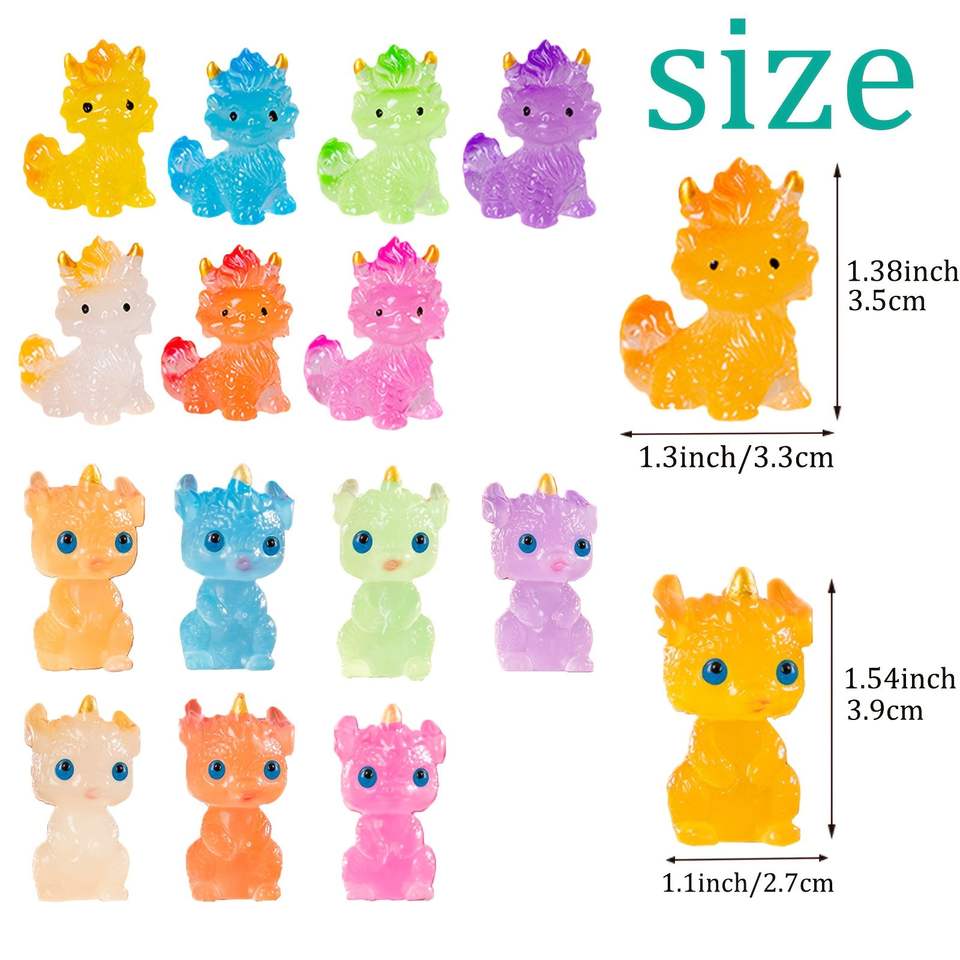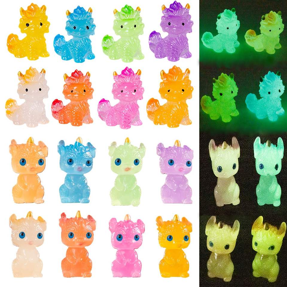 รูปปั้นมังกรเรซิ่นหลากสีสัน 16 ชิ้น ของตกแต่งสวนขนาดเล็กเรืองแสงสำหรับลานบ้านและโต๊ะทำงาน