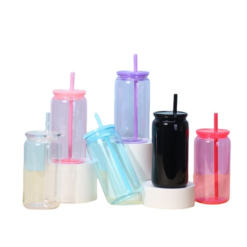 แก้วน้ำพลาสติกทรงกระป๋องนม/น้ำผลไม้/เบียร์ ขนาด 16 ออนซ์ ปลอดสาร BPA แบบกำหนดเองได้ พร้อมหลอดและฝาปิด