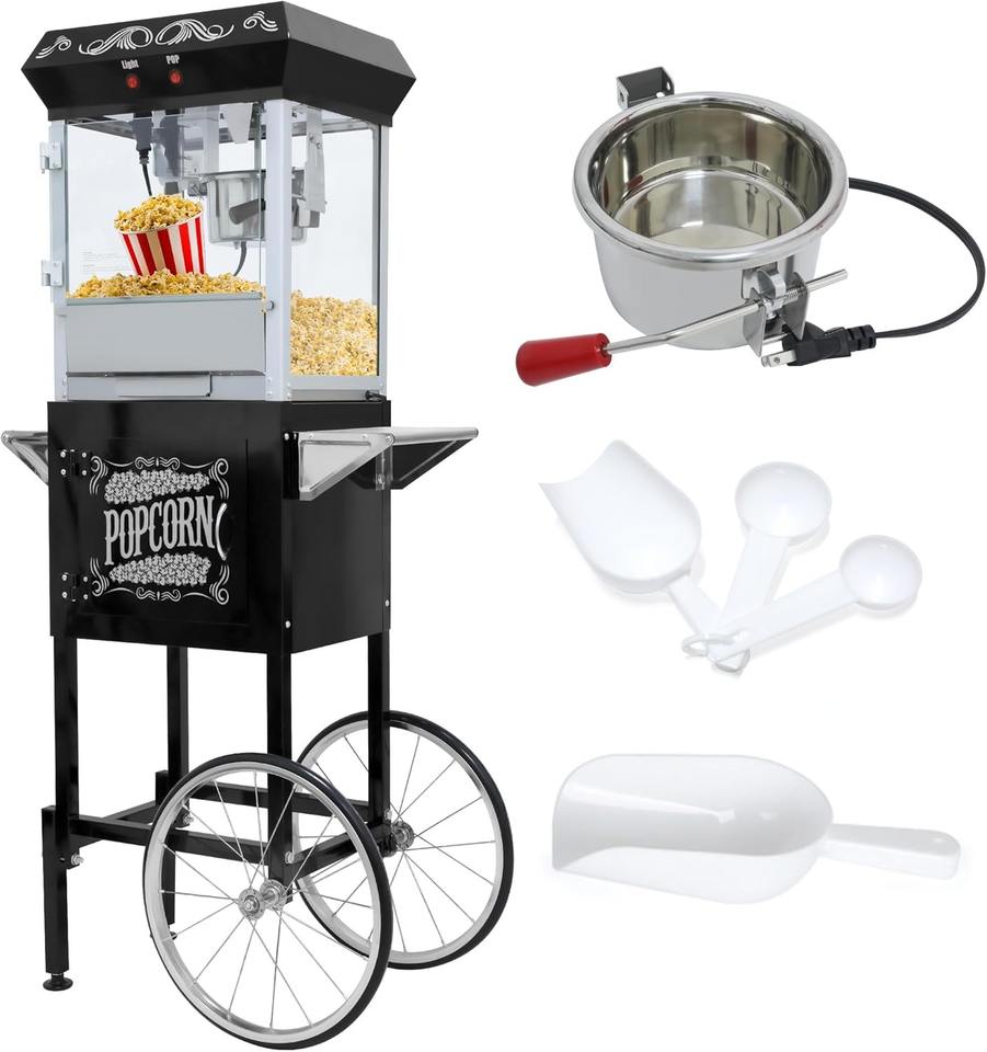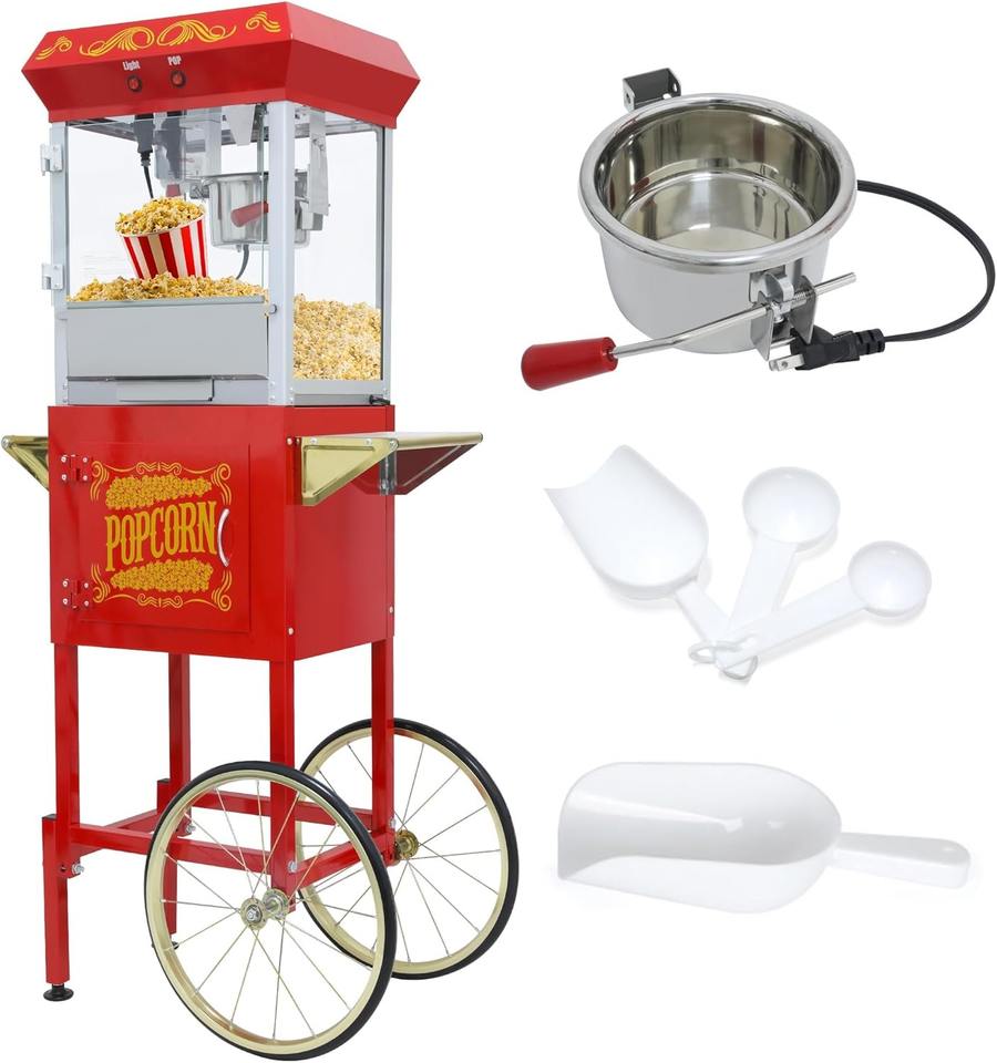 เครื่องทำป๊อปคอร์นเชิงพาณิชย์ขนาด 16 ออนซ์, 1440 วัตต์, เครื่องทำป๊อปคอร์นสำหรับโรงภาพยนตร์, เครื่องทำป๊อปคอร์นแบบตั้งโต๊ะสีแดงพร้อมระบบควบคุม 3 ปุ่ม
