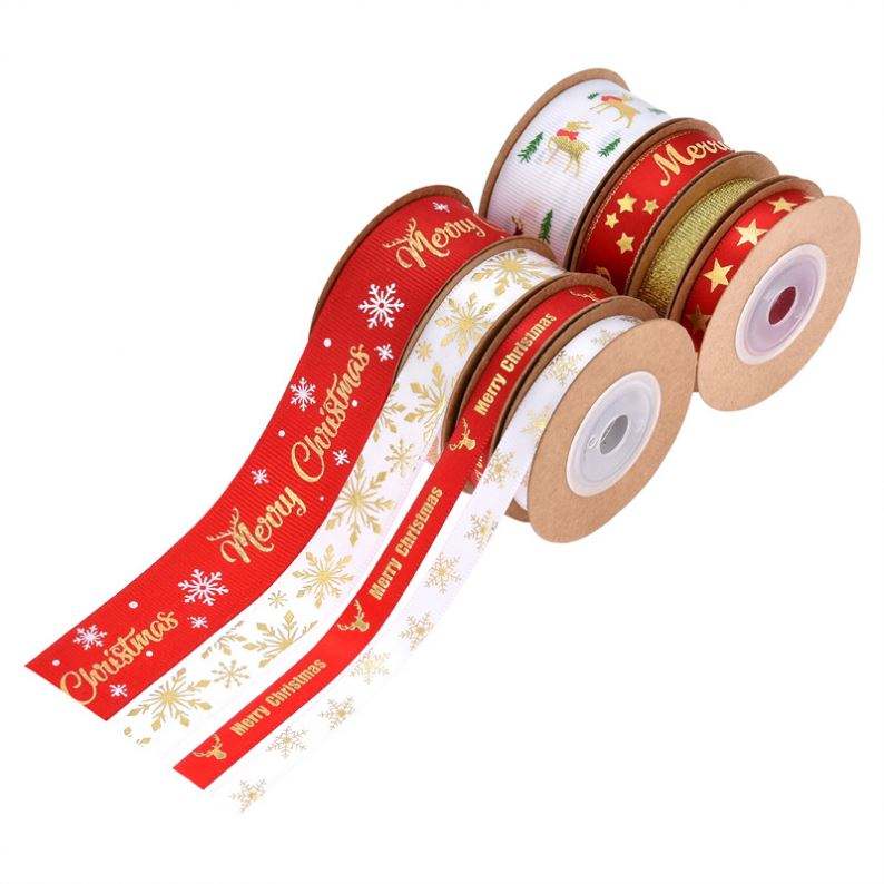 บรรจุภัณฑ์ของขวัญริบบิ้นพิมพ์ลาย16ชิ้นตกแต่งคริสต์มาสถักเปียขนาด5มีในสต็อก