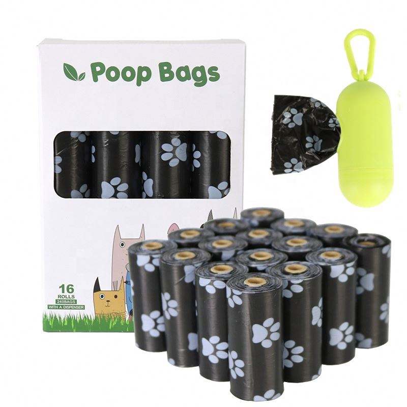 16 Rolls Eco-Friendly Biodegradable Dog Pet Poop Bag Cute Paw Pattern with Designer Poop Bag Holder