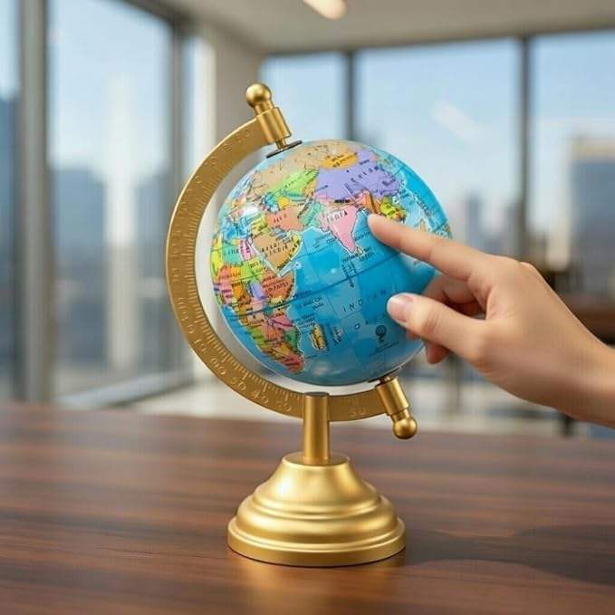 ลูกโลกตั้งโต๊ะขนาด 16 ซม. แผนที่โลกสำหรับการศึกษาภูมิศาสตร์ เหมาะสำหรับนักเรียน ลูกโลกหมุนได้ขนาดเล็ก ตกแต่งโต๊ะทำงาน เพื่อการศึกษา