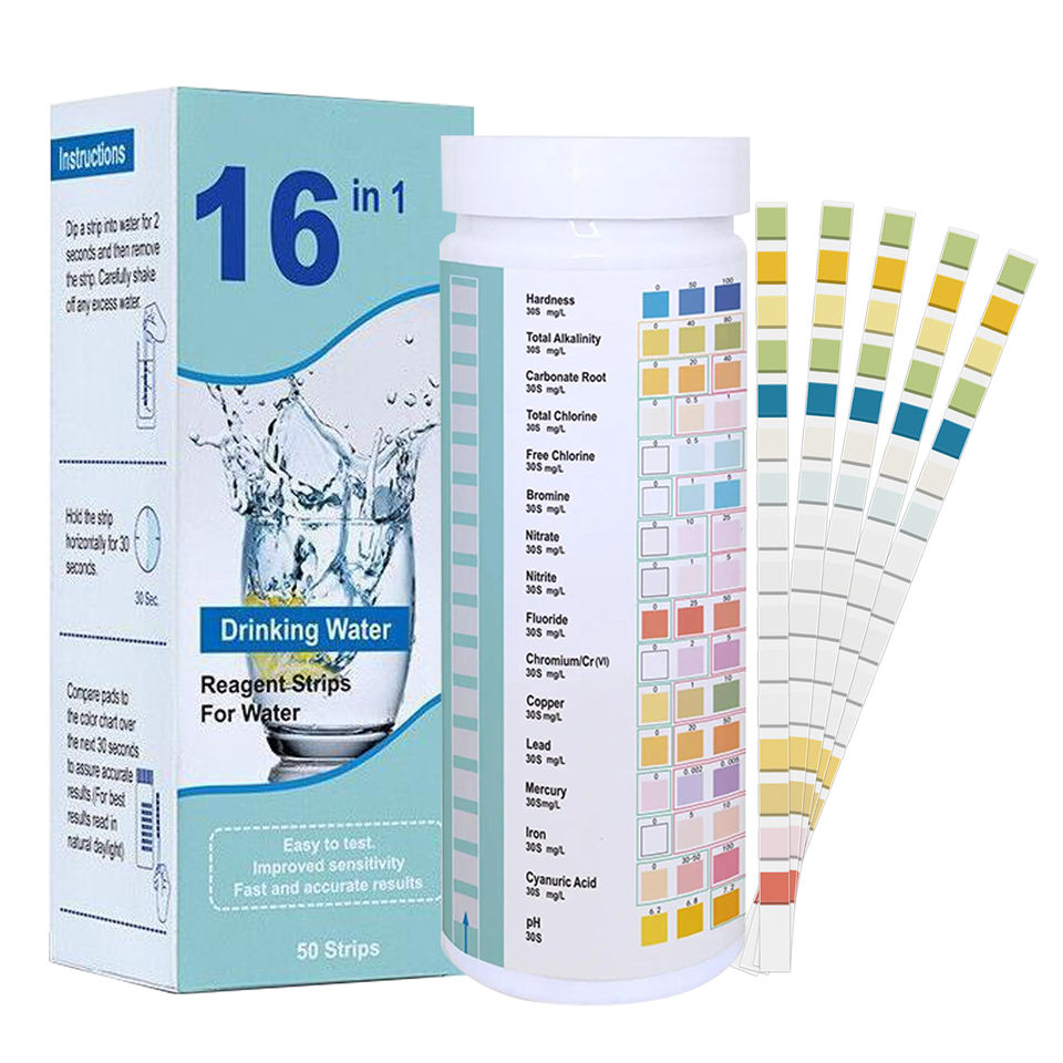 ชุดทดสอบน้ำดื่มในบ้าน 16 in 1 สำหรับตรวจสารตะกั่ว, ความกระด้าง, ค่า pH, แมงกานีส, ไนเตรต, ไนไตรต์, เหล็ก, ทองแดง, คลอรีน, ปรอท