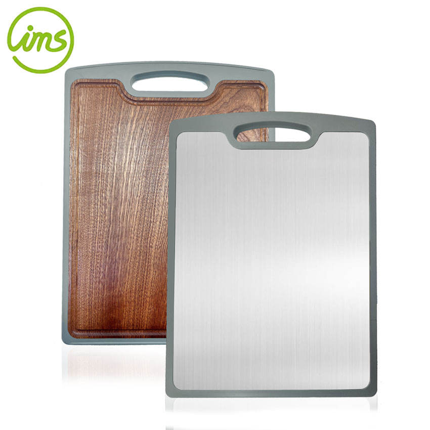 16"x12" Double-Sided Stainless Steel and Sandalwood Anti-Bacterial Anti-Slip Dishwasher Safe Cutting Board