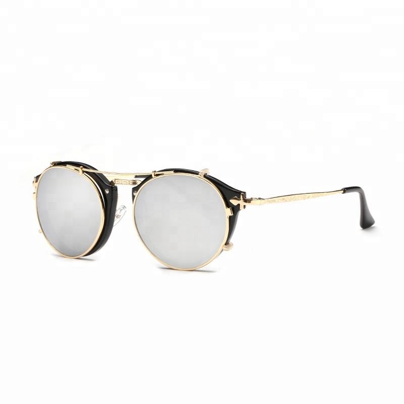 แว่นตาคลิปออนทรงวินเทจสไตล์สตีมพังก์ รุ่น 16001 พร้อมเลนส์โพลาไรซ์แบบกระจกและป้องกันรังสียูวี