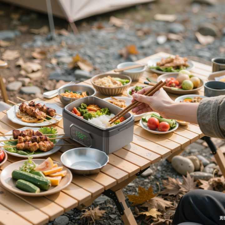 กล่องข้าวไฟฟ้าแบบพกพาขนาด 1600 มล. ใช้แบตเตอรี่ ชาร์จผ่าน USB พร้อมระบบทำความร้อนและเก็บความร้อน วัสดุสแตนเลส 304 สไตล์ยุโรป สำหรับใช้ในรถยนต์