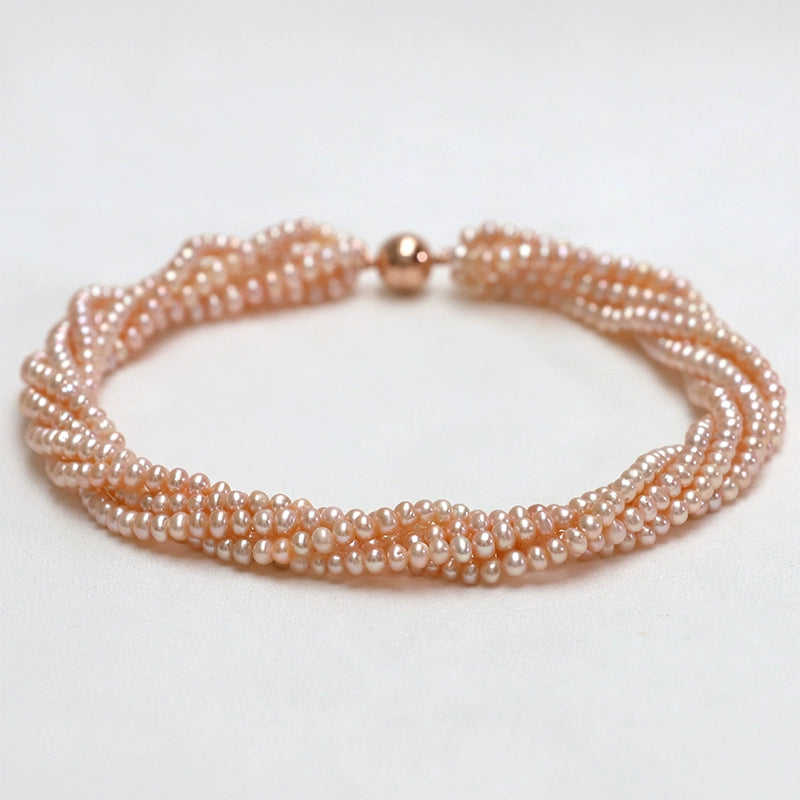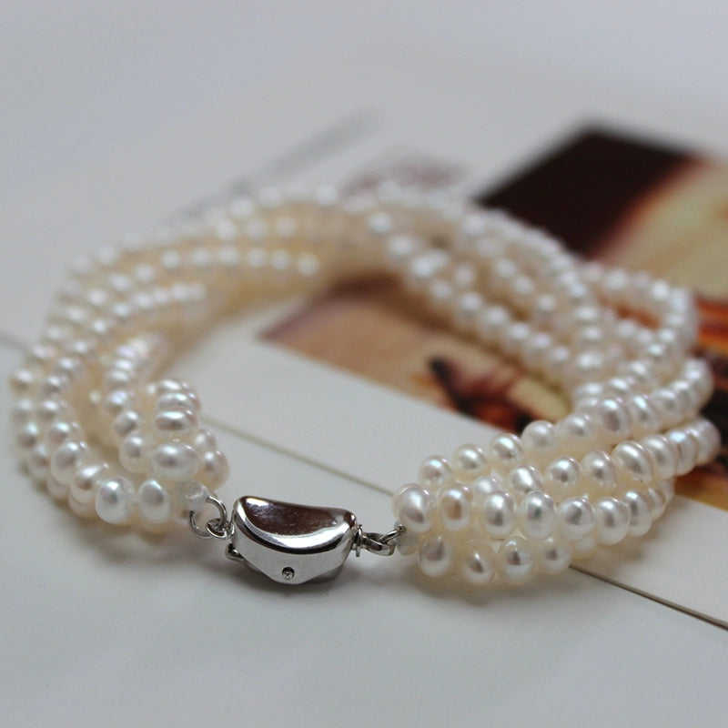 สร้อยข้อมือไข่มุกหลายชั้น 1615 ขนาด 3-4 มม. เครื่องประดับหรูหราและมีสไตล์สำหรับผู้หญิง