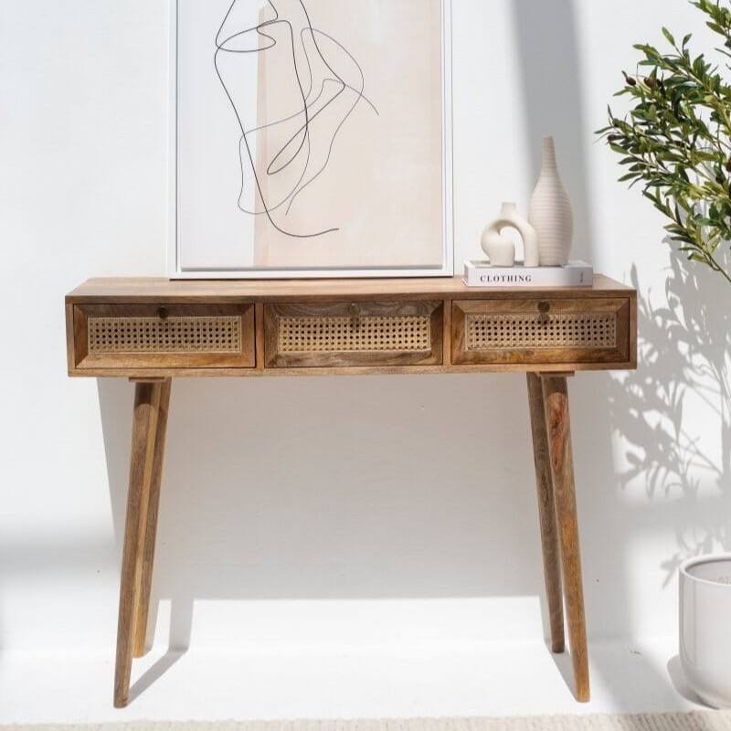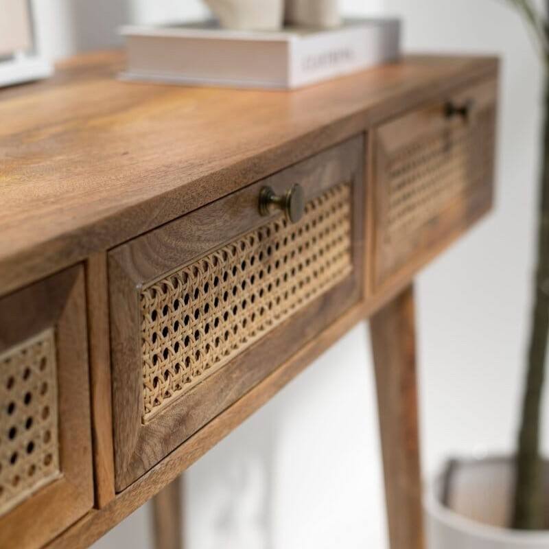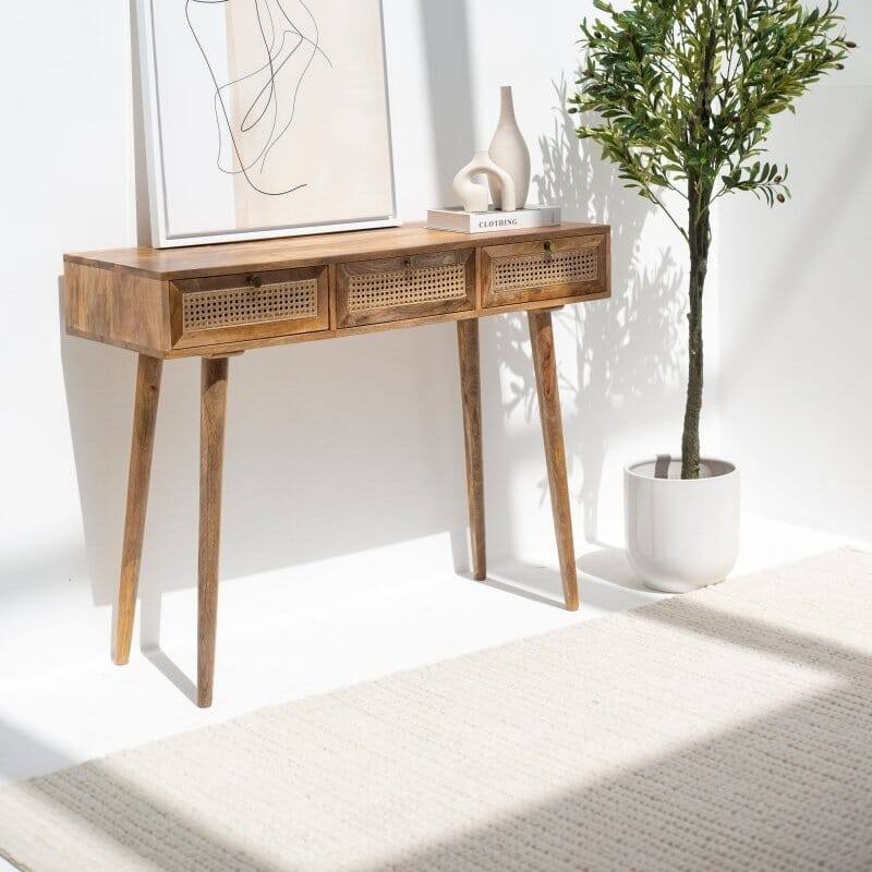 162V Vandana Lunaris Arista Rattan 3-Drawer Console Modern Natural Woven Accent Furniture Design