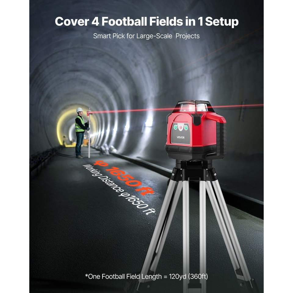 ชุดเครื่องวัดระดับเลเซอร์แบบหมุนได้ 360 องศา ระยะ 1650 ฟุต พร้อมขาตั้งกล้องแบบ Heavy-Duty รีโมทคอนโทรล แสงเลเซอร์สีแดงแนวนอน