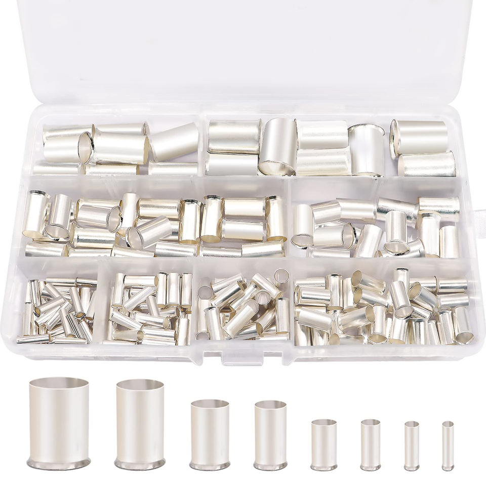 ชุดปลอกหุ้มสายไฟ 166 ชิ้น/กล่อง ปลอกทองเหลืองชุบทองแดง ขั้วต่อแบบจีบ รองรับแรงดันไฟฟ้า 250V มี 8 ขนาด ปลอกหุ้มฉนวนสำหรับปลายสายไฟ