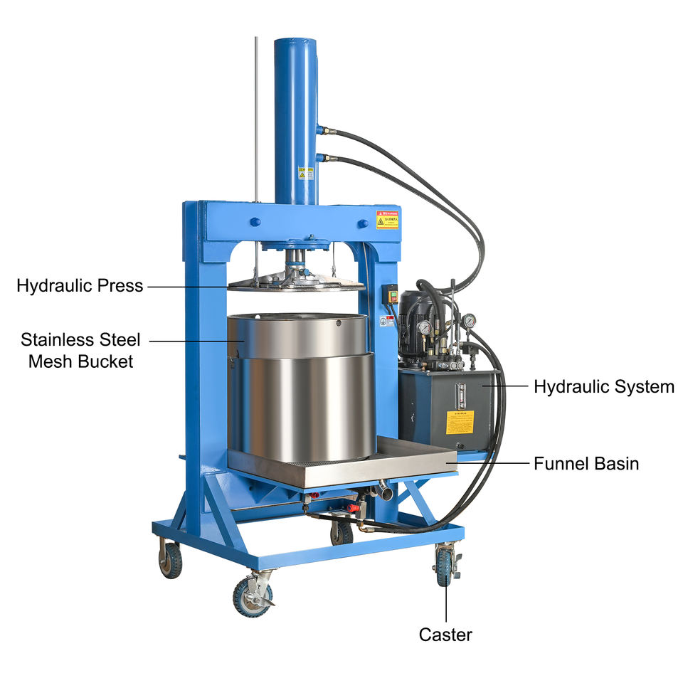 เครื่องกดผลไม้ไฟฟ้าไฮดรอลิก 169 ลิตร, ชิ้นส่วนสัมผัสอาหารสแตนเลส 304, เครื่องสกัดน้ำผลไม้