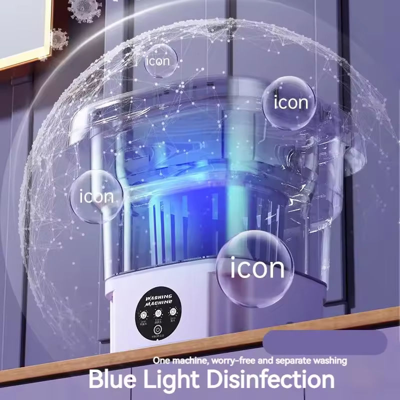 16L Blue Light Travel Portable Mini Folding Wash Machine Automatic Small Household Underwear Washer and Dryer Laundry Machine