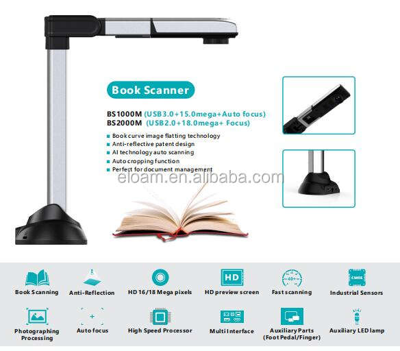 เครื่องสแกนหนังสือ16MP อัตโนมัติ OCR เอกสาร A3กล้อง USB ในห้องสมุดหุ้น PDF TIFF