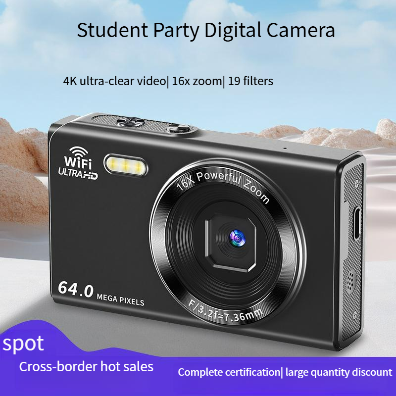 กล้องดิจิตอล 5K ซูม 16 เท่า พร้อม WiFi ออโต้โฟกัส หน้าจอ HD ขนาด 2.8 นิ้ว พร้อมไฟแฟลช LED สำหรับการถ่ายภาพ