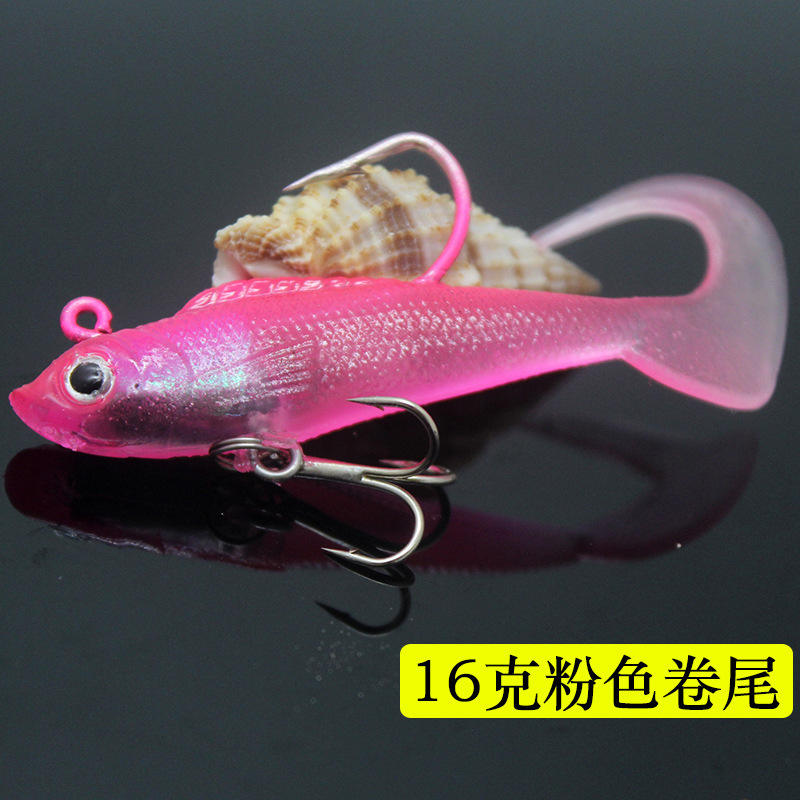 เหยื่อพีวีซีแข็งมีหางเป็นลอนยาว16ก. พร้อมตะขอเกี่ยวคันเบ็ดตะกั่วสำหรับตกปลาน้ำเค็มและเรือ