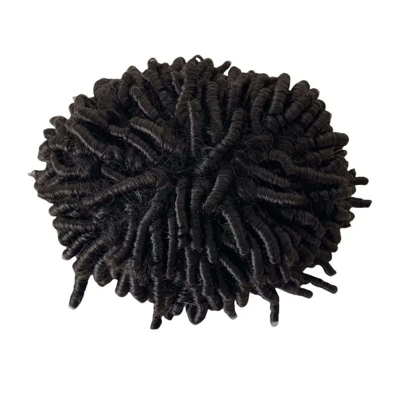 วิกผมยาว16นิ้วผมหยิกเป็นลอนสำหรับผู้ชายอินเดียผมปลอมฝอยจากธรรมชาติสำหรับผู้ชายวิกผมแบบโมโนขนาด15มม.
