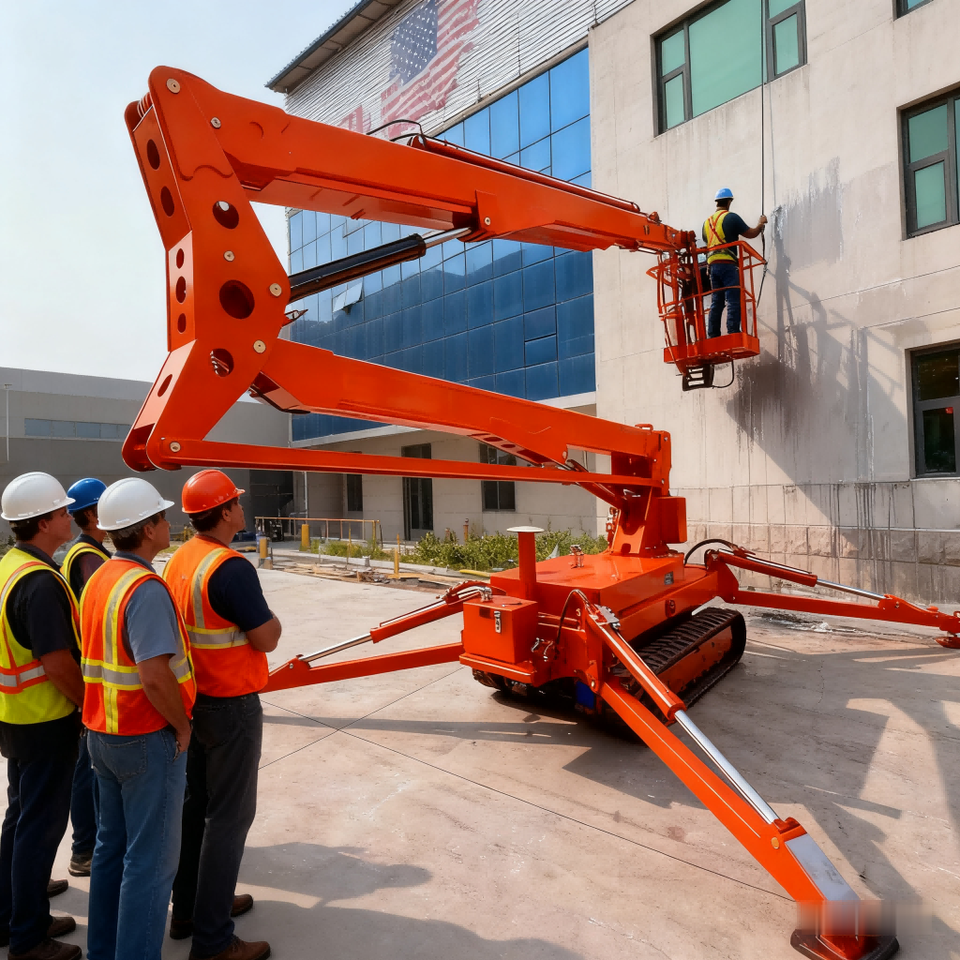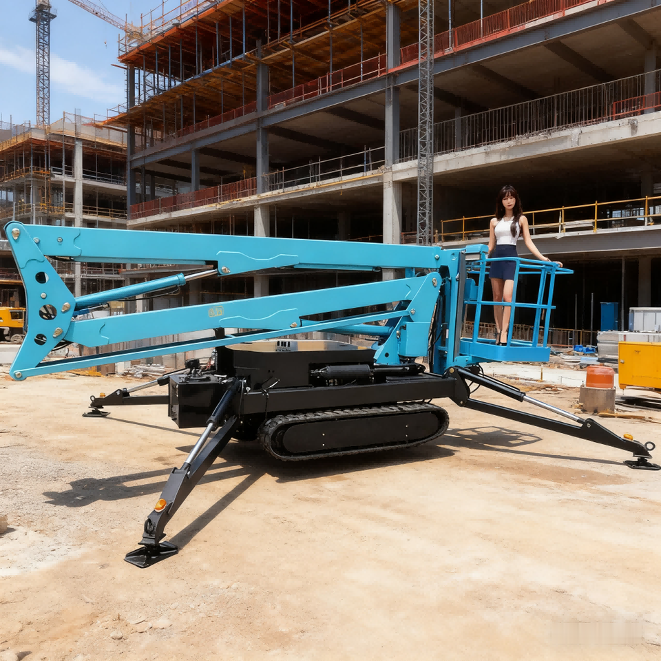 ตะกร้าหมุนหมุนไฟฟ้า16ม. 18ม. 20ม. แพลตฟอร์มยกของทรงแมงมุมแบบปรับได้