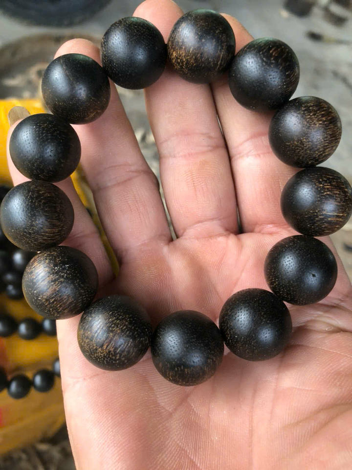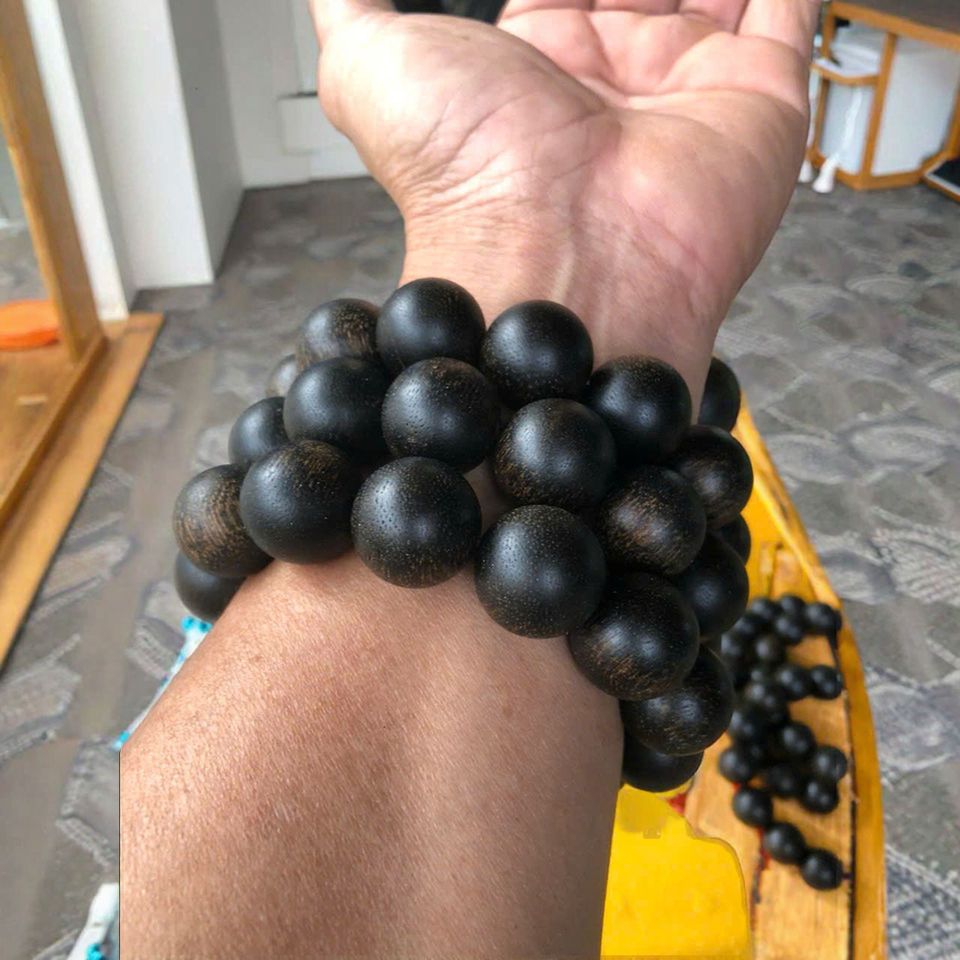 16มม. 18มม. ลูกปัด agarwood สร้อยข้อมือสีดำสร้อยข้อมือไม้ธรรมชาติเสน่ห์ทางศาสนาที่มีกลิ่นหอมสงบเงียบ