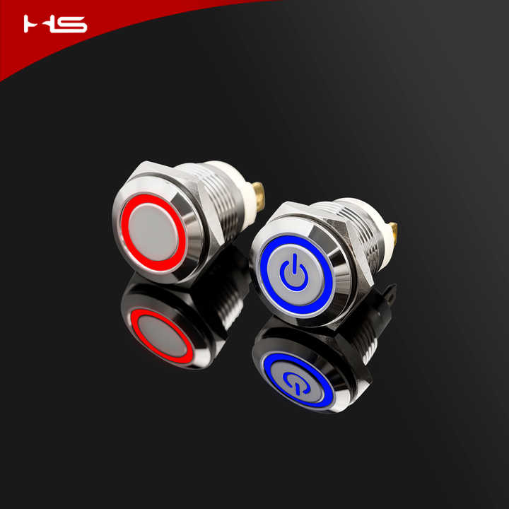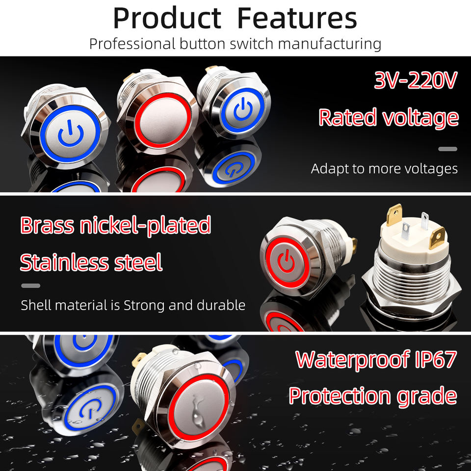 ปุ่มกดเปิด-ปิดทำจากโลหะ20A 16มม. แผงควบคุมสลักสำหรับเครื่องจักร CNC โครงสร้างอิเล็กทรอนิกส์สัญลักษณ์วงแหวนไฟ220V