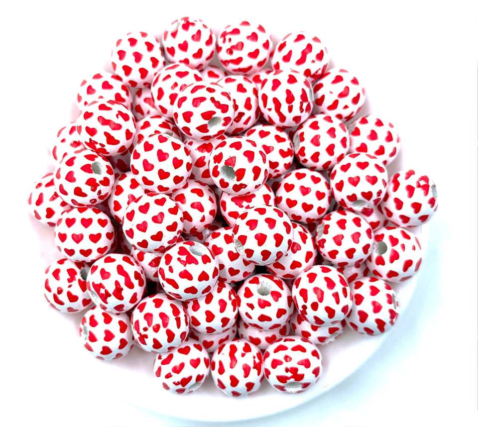 ลูกปัดไม้ทรงกลมสีรูปหัวใจขนาด 16 มม. งานฝีมือดีไซน์ทันสมัย ผลิตภัณฑ์อินเดีย สำหรับเทศกาลอีสเตอร์ พิธีบัพติศมา และเปิดเทอม