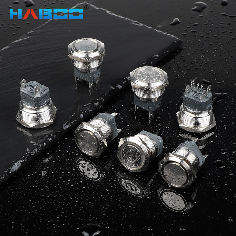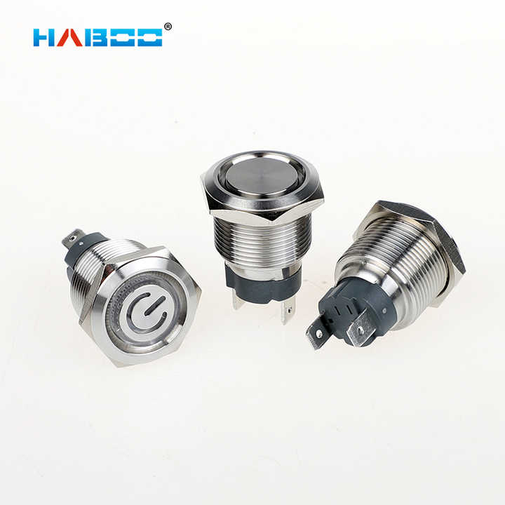 16 มม. ขนาดใหญ่ล็อคตัวเอง 10A แหวน LED สัญลักษณ์ไฟเปิดปิดสวิตช์ปุ่มโลหะสลัก