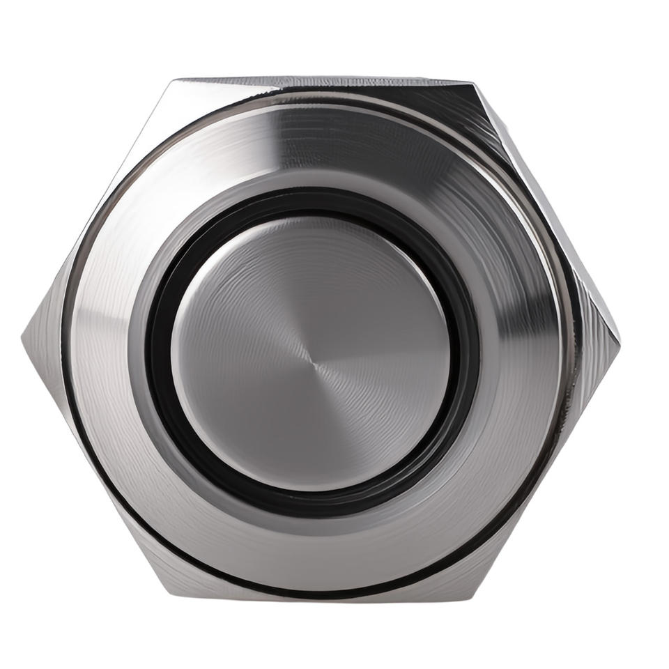 สวิตช์ปุ่มกดสแตนเลสขนาด 16 มม. IP65 1NO แรงดันต่ำ 6V แบบล็อค พร้อมไฟ LED สีเขียวสำหรับแผงควบคุม