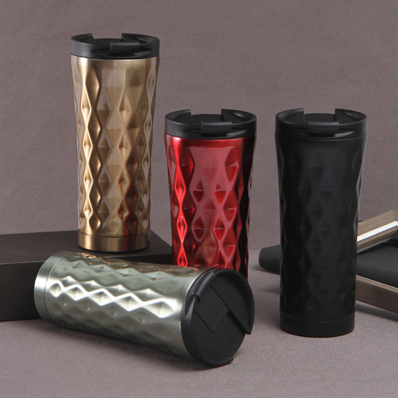 ถ้วยกาแฟสแตนเลสสูญญากาศพร้อมฝาปิดสูญญากาศผนังสองชั้นขนาด16ออนซ์17ออนซ์500มล. 304สำหรับตั้งแคมป์และสถานี