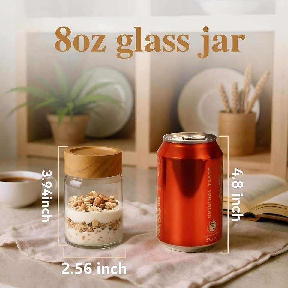 ขวดแก้วใส่อาหารขนาดใหญ่ 16 ออนซ์ 500 มล. เป็นมิตรกับสิ่งแวดล้อม เกรดสำหรับอาหาร ป้องกันกลิ่น พรีเมียม ฝาเกลียวไม้ สำหรับใส่น้ำผึ้ง แยม คุกกี้