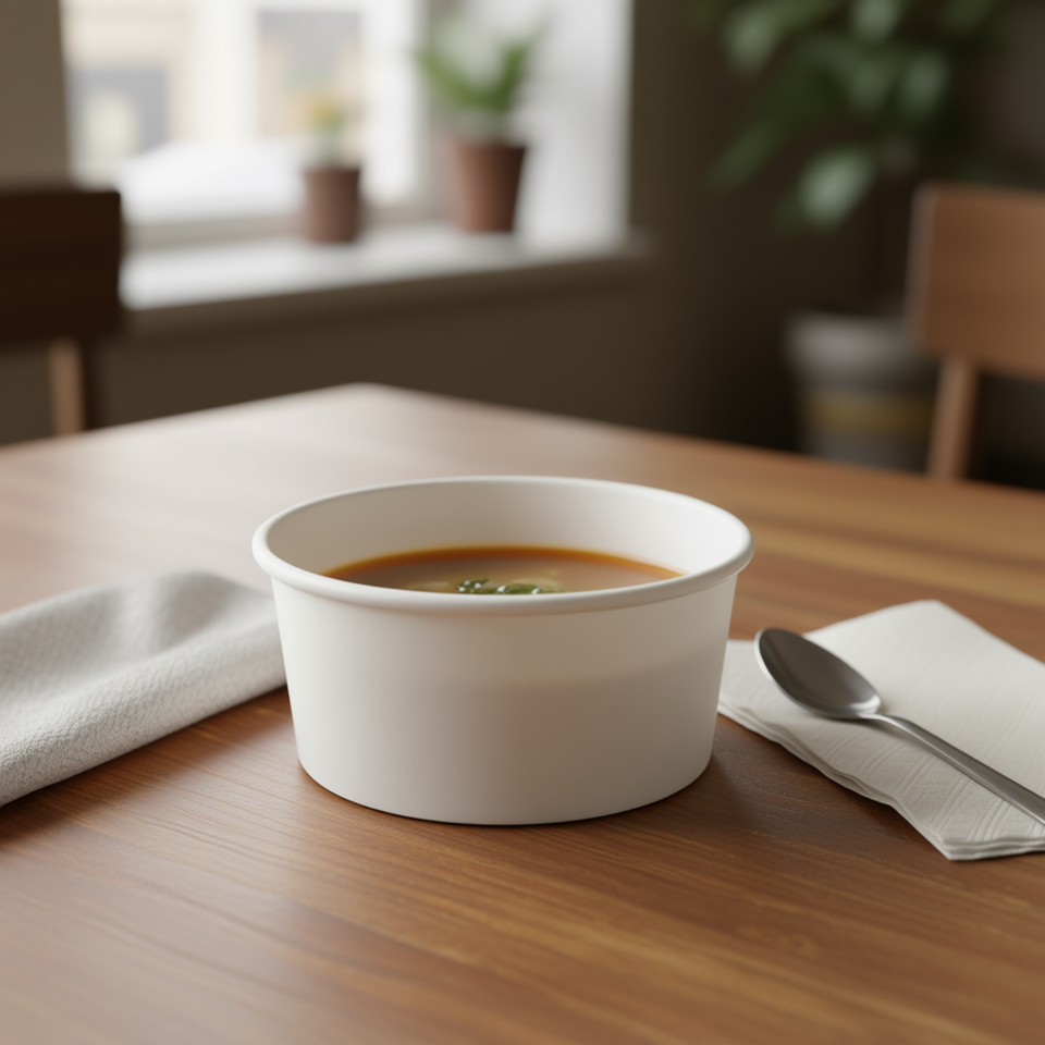 ภาชนะใส่ซุปกระดาษสีขาวแบบใช้แล้วทิ้งขนาด 16 ออนซ์ สำหรับเครื่องดื่มร้อนและอาหาร