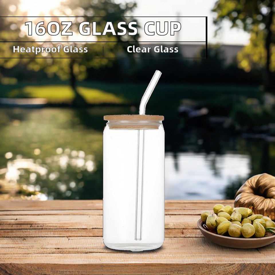 แก้วบอโรซิลิเกตทรงสูง16oz ถ้วยทำจากสแตนเลสแก้วใสมีฝาปิดทำจากไม้ไผ่ดีไซน์ทนความร้อนแบบเรียบง่ายสำหรับใส่เครื่องดื่มส่งเสริมการขาย