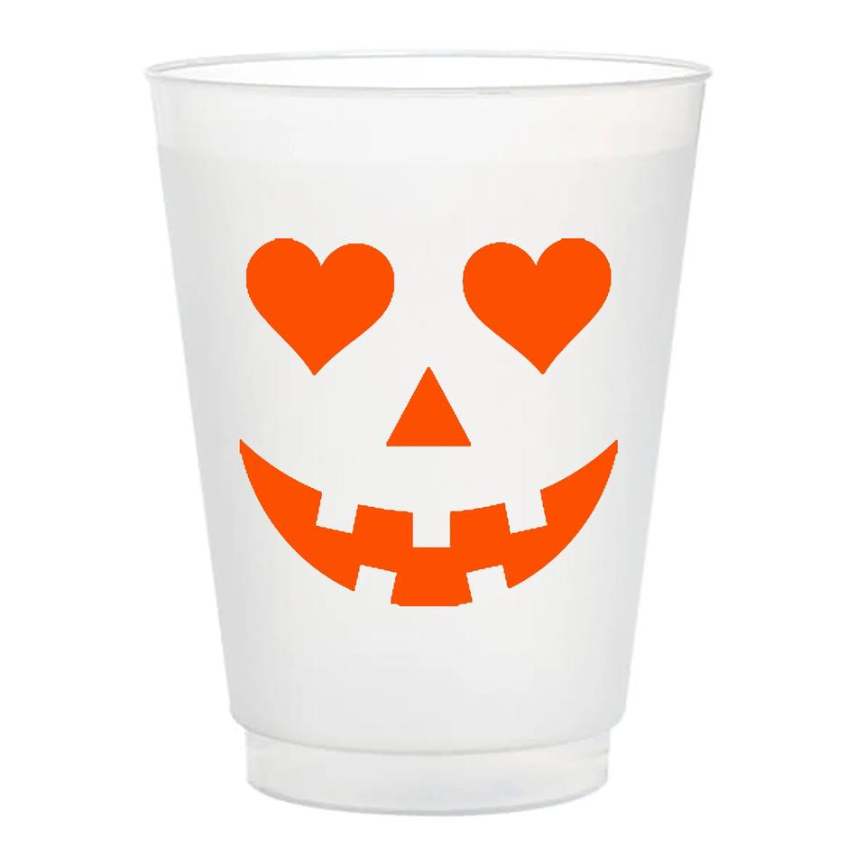 ถ้วยแช่แข็ง16ออนซ์กันแตกพิมพ์ลายที่กำหนดเองถ้วยแก้วสำหรับงานแต่งงานนำกลับมาใช้ใหม่ได้ถ้วยฝ้ารูปหัวใจแจ็คโคมไฟสีส้ม